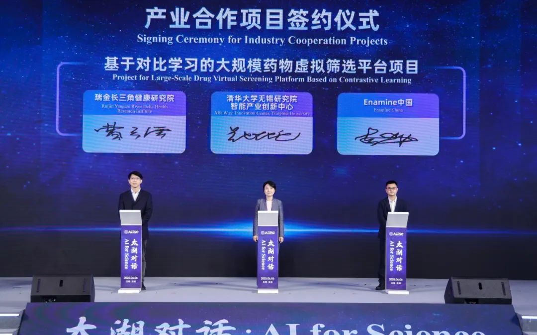 仲夏之月,“新”潮奔涌。6月6日,“2025太湖对话·AI for Science”活动在滨湖举行,全国首个“DrugCLIP:AI驱动的超高通量药物虚拟筛选平台”正式发布,一批人工智能领域合作项目集中签约。现场,来自全球的专家学者、产业领袖齐聚一堂,围绕科技与产业共话未来,为滨湖乃至无锡人工智能产业发展注入全新活力。