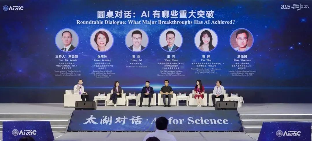 在主题演讲环节,四位院士围绕“AI驱动科学研究的范式变革”开展超级对话,共同探索AI+发展新未来。随后,三场高水平圆桌论坛相继开展,分别以“AI有哪些重大突破”、“AI for Science”和“AI for Healthcare”为主题,为产学研各界搭建了深度交流的平台。