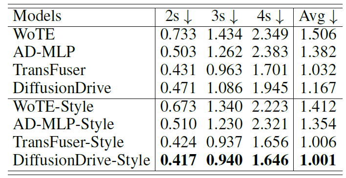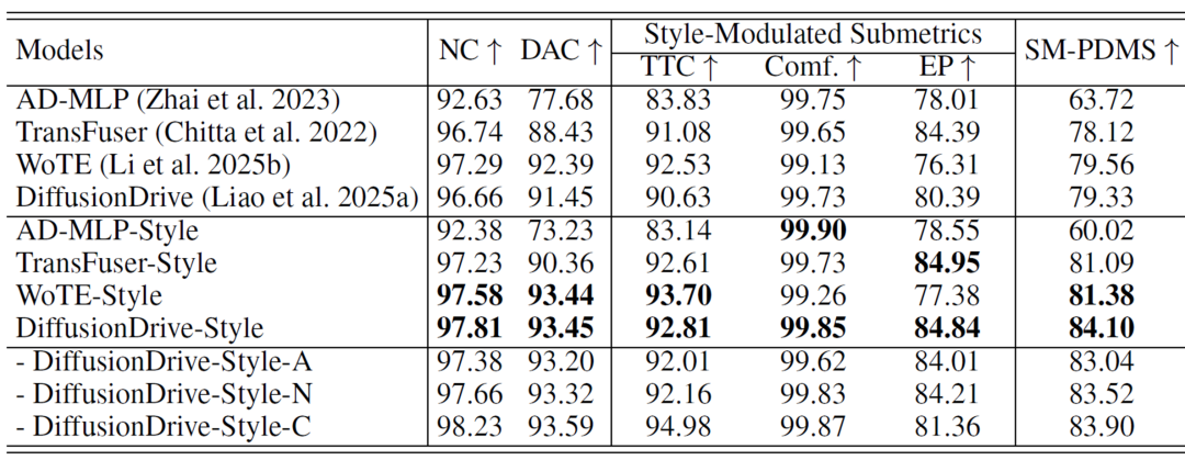 在四种典型的 E2EAD 架构中加入倾向条件控制,使其具备“按倾向驾驶”的能力,并在 StyleDrive Benchmark 上统一评测: